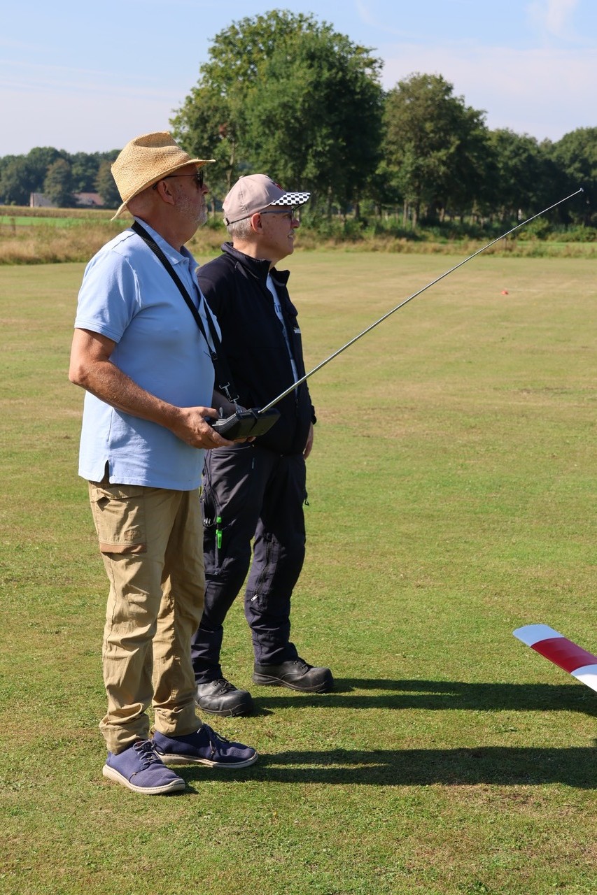 Hallo Allemaal, Zaterdag 6 september was de laatste wedstrijd van het jaar 2025. Dit jaar geen Fly-in omdat er nog een wedstrijd ingehaald moest worden. Het zag er naar uit dat het een lekkere dag zou gaan worden, de zon was er en bijna geen wind. We hadden 17 deelnemers. We konden nog niet meteen beginnen want Lex vertelde dat hij 23 jaar getrouwd was en daarom had hij wat lekkers voor bij de koffie meegenomen en dat moest eerst genuttigd worden. (Lex bedankt). De inschrijving was gedaan dus er kon gevlogen worden. Zo te zien had iedereen het wel naar zijn zin en het verliep ook vlotjes. Na 2 rondes gevlogen te hebben was het tijd voor de pauze. Deze keer hadden we besloten dat we vanuit de organisatie een simpele bbq zouden doen. Joan had de taak op zich genomen om te bakken. (Joan bedankt). Na deze heerlijke onderbreking was het tijd om de laatste wedstrijd vlucht te maken. Ook deze verliep vlot. Omstreeks 14.00 uur was de wedstrijd klaar en konden de punten geteld worden. Het was spannend tot het laatste moment want de allerlaatste vlucht van Peter Gordijn was bepalend of dat hij het seizoen zou winnen of dat het toch Sven Gordijn zou worden. Peter had een achterstand van 3 punten op Sven en hij mocht nog 1 vlucht vliegen om dit goed te maken. Hij moest dan zijn 5e beste vlucht met 3 punten verbeteren. Doellanding was perfect alleen de vliegtijd was onvoldoende. Conclusie: 1. Sven Gordijn 2261 punten, 2. Peter Gordijn 2258 punten, 3. Willy v.d. Elsen 2249 punten. Deze personen kregen hiervoor een prijs. De rest van de uitslag staat in de bijlage. Er is ook een wisselbeker voor de seizoensbeker de beste deelnemer van het seizoen, Sven Gordijn. Ik wil nog even toevoegen dat Sven dit jaar 2 van de 3 wedstrijddagen heeft meegevlogen wat het nog lastiger maakt om kampioen te worden. Super Gedaan! De Maurice trofee, wat inhoud dat je het hoogste aantal punten hebt behaald in het seizoen werd ook (Saai!!!) gewonnen door Sven met 459 punten. Het maximale is 460 punten, 360 punten voor de tijd (6x60 seconden=360 seconden=360 punten plus 100 punten voor de landing waarbij er bij elke meter verder van het doel 5 punten afgaat en buiten 15 meter is 0 punten). Er waren geen tijden bekend voor de beste thermiektijd van het jaar waardoor deze prijs niet is uitgereikt. Tot slot wil ik iedereen bedanken die het mogelijk heeft gemaakt dat wij een leuk seizoen hebben gehad met een speciaal woord van dank voor de heren Slepers. Ik hoop jullie allemaal volgend jaar weer terug te zien zodat we opnieuw met elkaar de strijd aan kunnen gaan. Groeten Robert. |