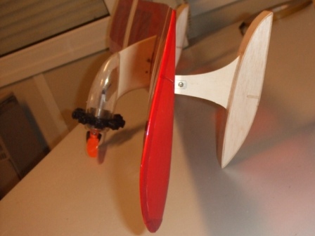 Vleugel compleet met aluminium tipdrijver bevestiging, staart bijna klaar (stabilo gaat er nog af tijdens glassen, werkt gemakkelijker) |