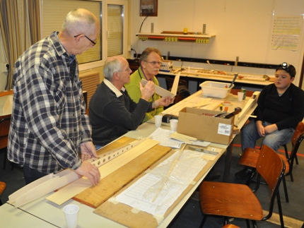 Woensdag 21 december, derde bouwavond Woensdag 21-12-2011 was het alweer de derde bouwavond. Zo als jullie kunnen zien wordt er druk gebouwd. Er is al het een en ander van de te bouwen modellen te zien. Ik heb dus een vleugel in elkaar gezet, al was het midden stuk van mij en de tips van Willy, Maar toch het is een vleugel. En er wordt door verschillende bouwers ook gewerkt aan de romp. En natuurlijk ribben allemaal ribben. Bekijk de foto’s want een foto zegt meer dan duizend woorden, al is dat wel wat afgezaagd. Volgende woensdag is er geen bouwavond wand dan gaan we allemaal naar Keldonk voor de ruilbeurs. De eerstvolgende bouwavond is op woensdag 4-1-2012. |
