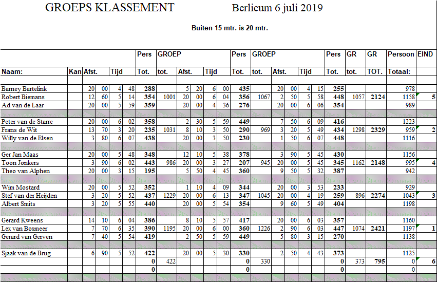 Klassement regiozweef 2019 Puntentelling: klik hier voor toelichting (nieuw venster)