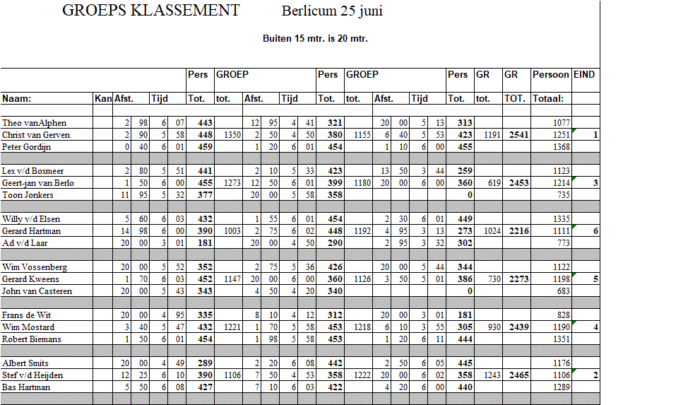 Uitslag en foto's regiozweef Berlicum 25 juni 2022 |