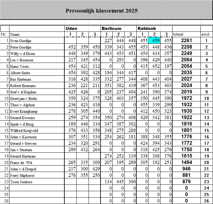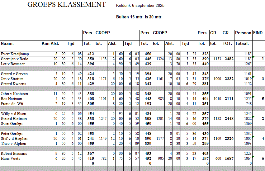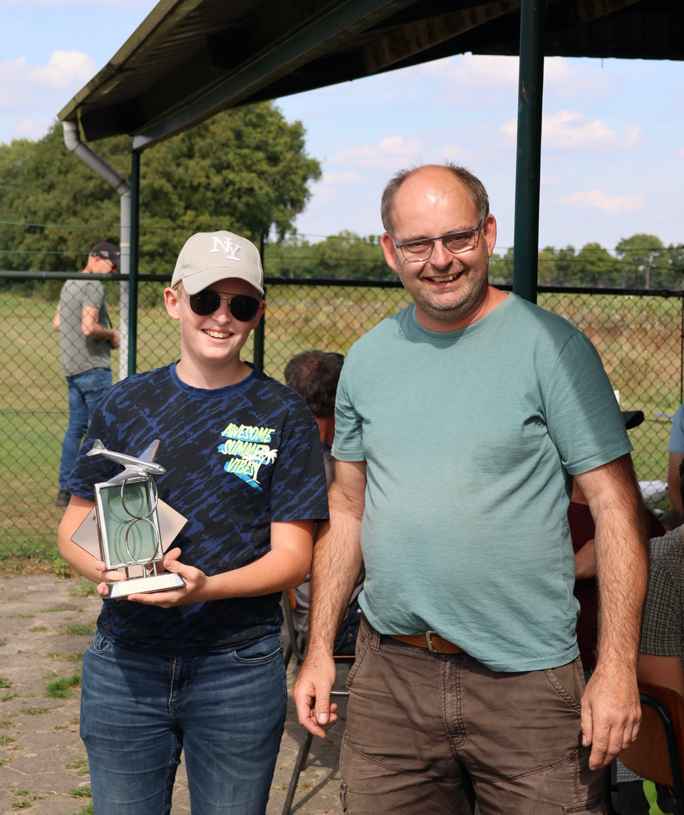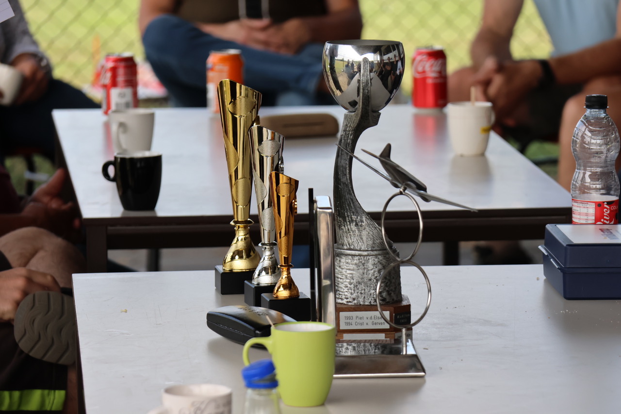Hallo Allemaal, Zaterdag 6 september was de laatste wedstrijd van het jaar 2025. Dit jaar geen Fly-in omdat er nog een wedstrijd ingehaald moest worden. Het zag er naar uit dat het een lekkere dag zou gaan worden, de zon was er en bijna geen wind. We hadden 17 deelnemers. We konden nog niet meteen beginnen want Lex vertelde dat hij 23 jaar getrouwd was en daarom had hij wat lekkers voor bij de koffie meegenomen en dat moest eerst genuttigd worden. (Lex bedankt). De inschrijving was gedaan dus er kon gevlogen worden. Zo te zien had iedereen het wel naar zijn zin en het verliep ook vlotjes. Na 2 rondes gevlogen te hebben was het tijd voor de pauze. Deze keer hadden we besloten dat we vanuit de organisatie een simpele bbq zouden doen. Joan had de taak op zich genomen om te bakken. (Joan bedankt). Na deze heerlijke onderbreking was het tijd om de laatste wedstrijd vlucht te maken. Ook deze verliep vlot. Omstreeks 14.00 uur was de wedstrijd klaar en konden de punten geteld worden. Het was spannend tot het laatste moment want de allerlaatste vlucht van Peter Gordijn was bepalend of dat hij het seizoen zou winnen of dat het toch Sven Gordijn zou worden. Peter had een achterstand van 3 punten op Sven en hij mocht nog 1 vlucht vliegen om dit goed te maken. Hij moest dan zijn 5e beste vlucht met 3 punten verbeteren. Doellanding was perfect alleen de vliegtijd was onvoldoende. Conclusie: 1. Sven Gordijn 2261 punten, 2. Peter Gordijn 2258 punten, 3. Willy v.d. Elsen 2249 punten. Deze personen kregen hiervoor een prijs. De rest van de uitslag staat in de bijlage. Er is ook een wisselbeker voor de seizoensbeker de beste deelnemer van het seizoen, Sven Gordijn. Ik wil nog even toevoegen dat Sven dit jaar 2 van de 3 wedstrijddagen heeft meegevlogen wat het nog lastiger maakt om kampioen te worden. Super Gedaan! De Maurice trofee, wat inhoud dat je het hoogste aantal punten hebt behaald in het seizoen werd ook (Saai!!!) gewonnen door Sven met 459 punten. Het maximale is 460 punten, 360 punten voor de tijd (6x60 seconden=360 seconden=360 punten plus 100 punten voor de landing waarbij er bij elke meter verder van het doel 5 punten afgaat en buiten 15 meter is 0 punten). Er waren geen tijden bekend voor de beste thermiektijd van het jaar waardoor deze prijs niet is uitgereikt. Tot slot wil ik iedereen bedanken die het mogelijk heeft gemaakt dat wij een leuk seizoen hebben gehad met een speciaal woord van dank voor de heren Slepers. Ik hoop jullie allemaal volgend jaar weer terug te zien zodat we opnieuw met elkaar de strijd aan kunnen gaan. Groeten Robert. |